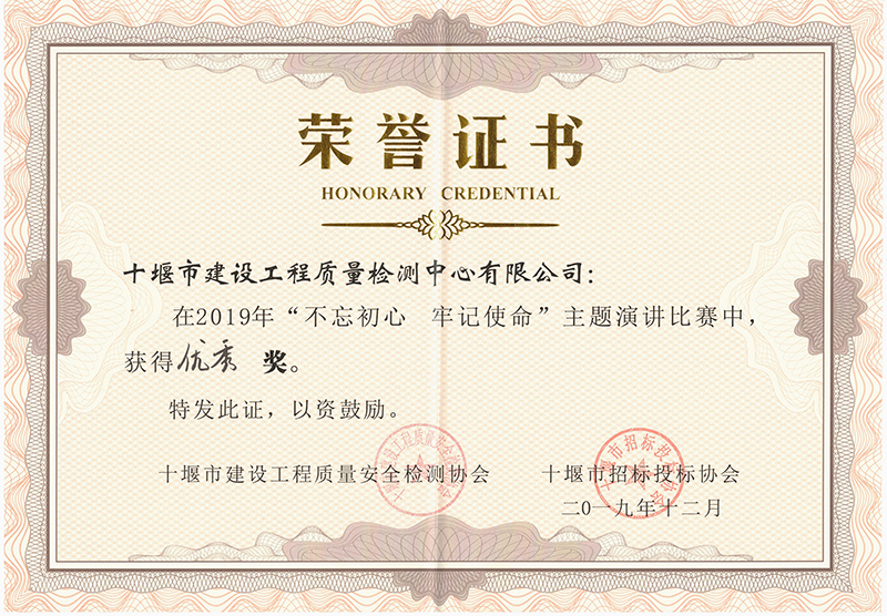 2019.12不忘初心,牢記使命 演講比賽優(yōu)秀獎(jiǎng)