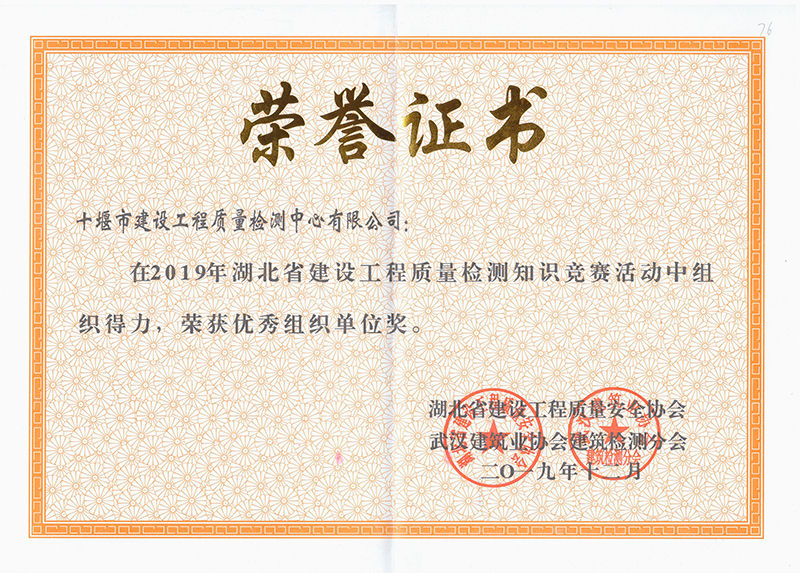 2019.12湖北省工程質(zhì)量檢測(cè)知識(shí)競(jìng)賽活動(dòng)獲優(yōu)秀組